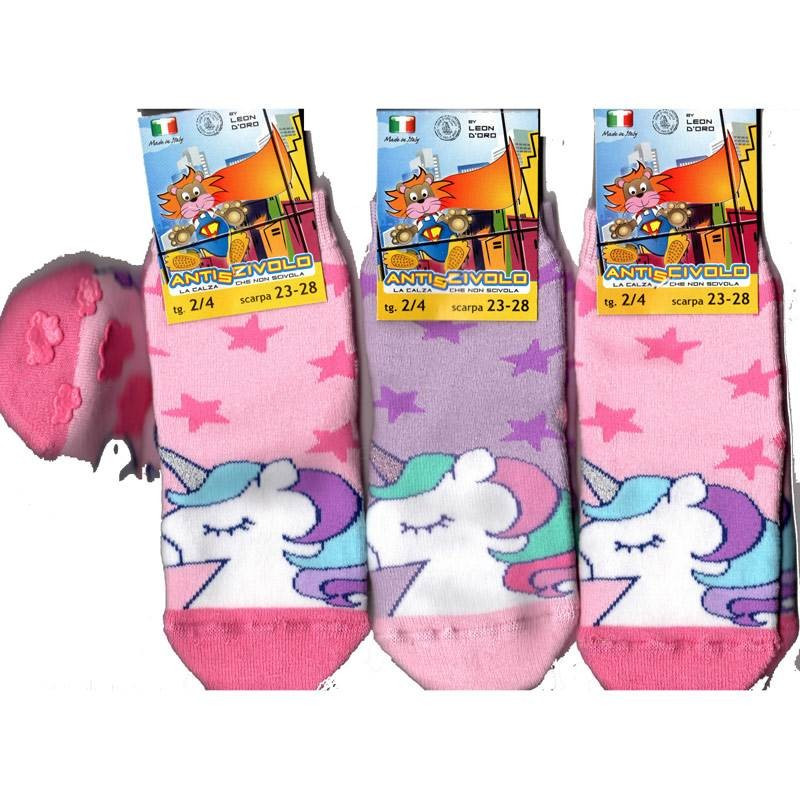 6 paia antiscivolo bimba in caldo cotone elasticizzato rasato, lavorato in graziose fantasie assortite. Confortevole interno in soffice spugnone. Morbido polsino elastico a costina. ABS colorati, in forme e colori differenti, sulla pianta del piede. Confezione assortita in colori e lavorazioni disponibile nelle taglie 2/4 (23/28) 6/8 (29/34) 10/12 (35/40). Qualità e stile Made in Italy