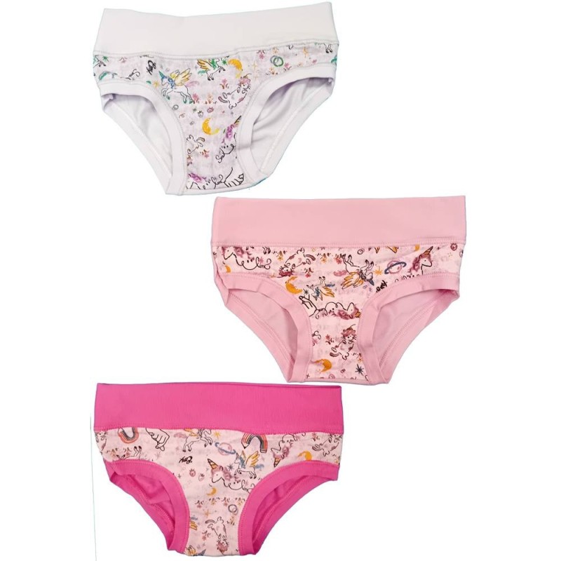 6 slip bimba in cotone elasticizzato stampato davanti in piccola fantasia. Morbido cinturino elastico alto tinta unita in vita. Confezione assortita nei colori rosa fluo, pink e old mouve disponibile dalla taglia 2 alla 11/12
