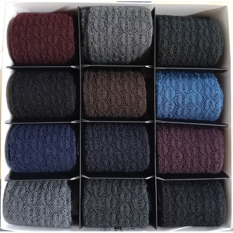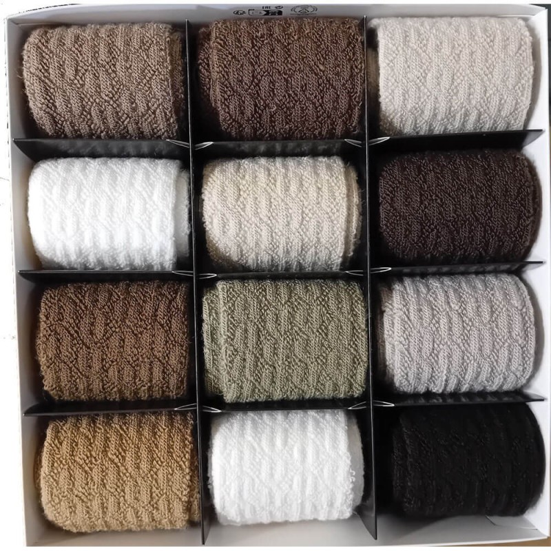 12 paia calza donna soft lunga, tubolare, tinta unita, lavorata in filo in fantasia geometrica verticale. Morbida, soffice, calda, estremamente confortevole. Comodo polsino elastico a costina. Disponibile in taglia unica nei colori assortiti francese e assortiti naturale