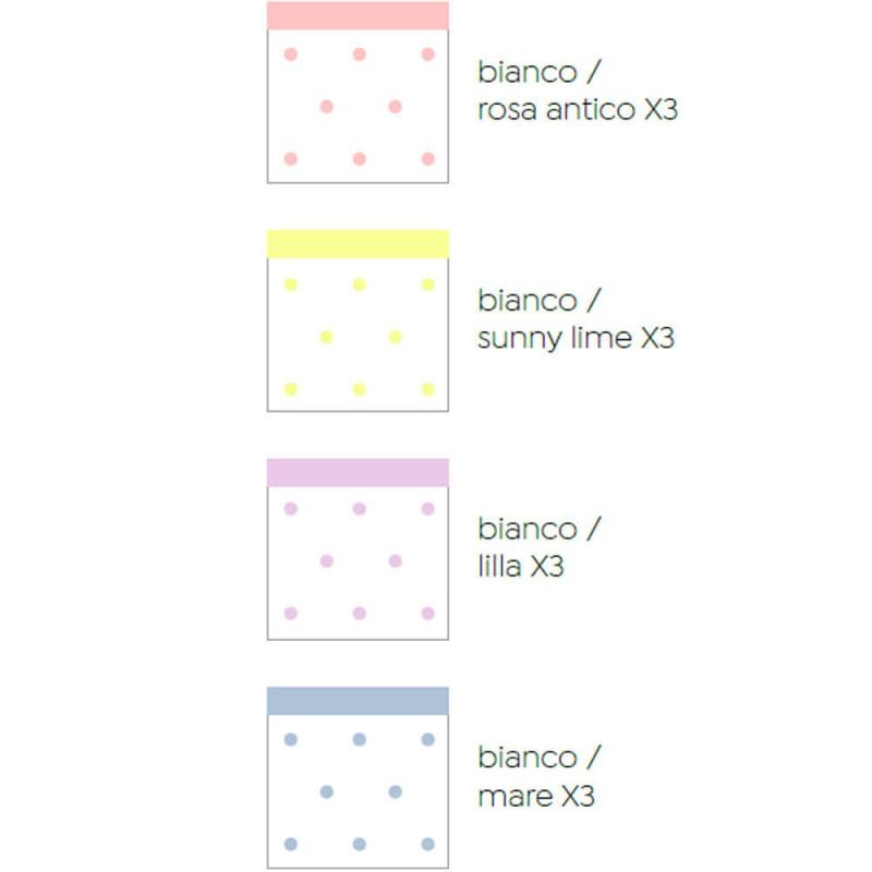12 paia calza donna corta in filo di Scozia elasticizzato rasato, a micro pois colorati. Gambaletto colorato al bordo, come il morbido polsino elastico leggermente arricciato al bordo