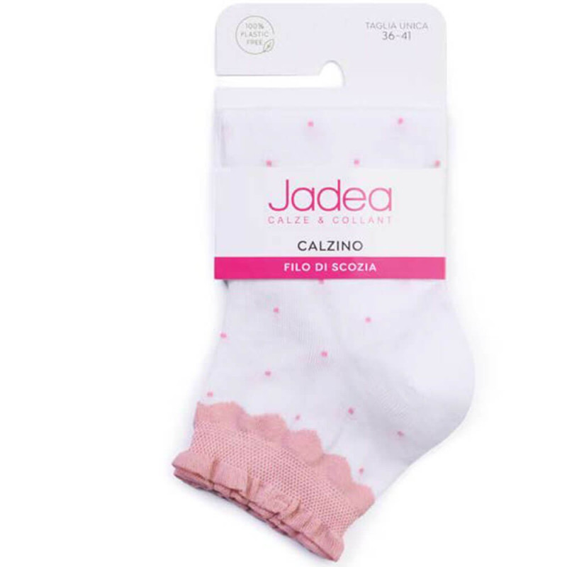 12 paia calza donna corta in pregiato cotone filo di Scozia elasticizzato, tinta unita bianco ricamato a micro pois colorati, come la parte finale del gambaletto ed il morbido polsino elastico lavorato a nido d' ape e leggermente arricciato al bordo. Disponibile in taglia unica 36/41 in colori assortiti. Qualità e stile Made in Italy