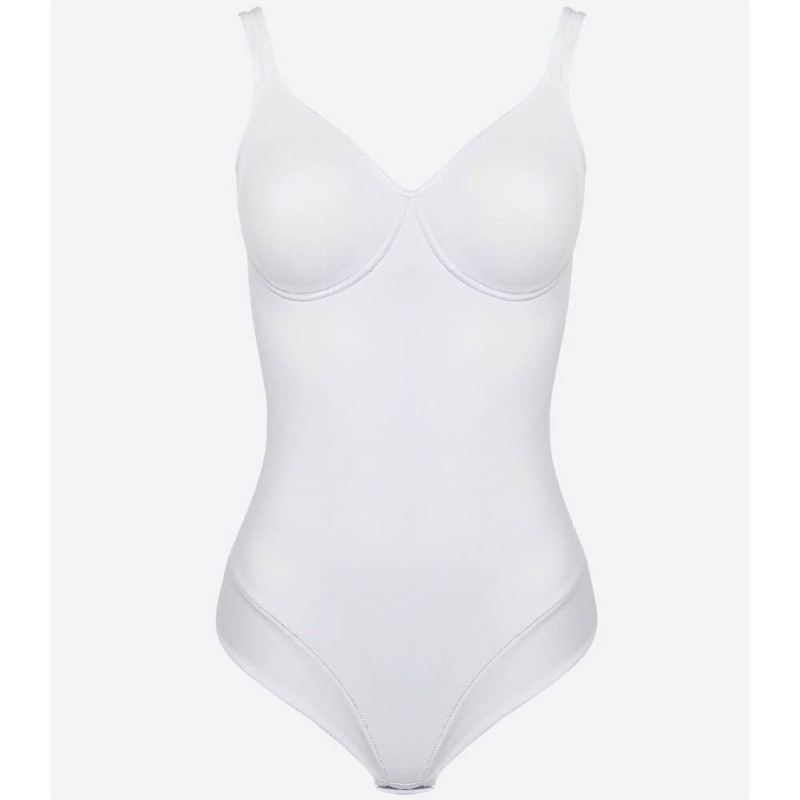 Body donna in morbida microfibra elasticizzata compatta, doppiata davanti per una piacevole sensazione contenitiva. Comoda sgambatura senza elastico. Coppe B, preformate, senza ferretto, con una leggera imbottitura laterale. Comode spalline semielastiche regolabili. Disponibile nei colori bianco, nero e nudo dalla taglia 3 alla 7