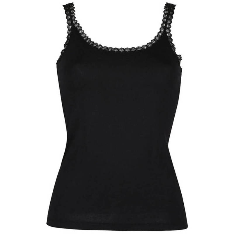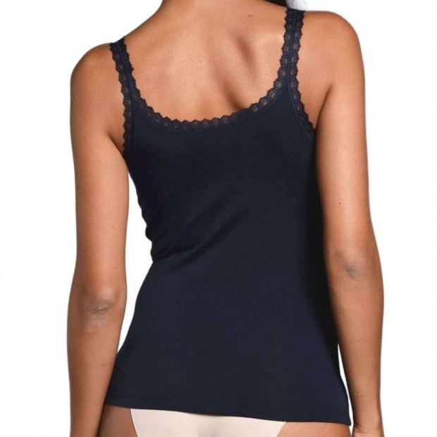 Top donna in cotone modal tinta unita con spalline in pizzo elasticizzato come il profilo dello scollo e degli scavi