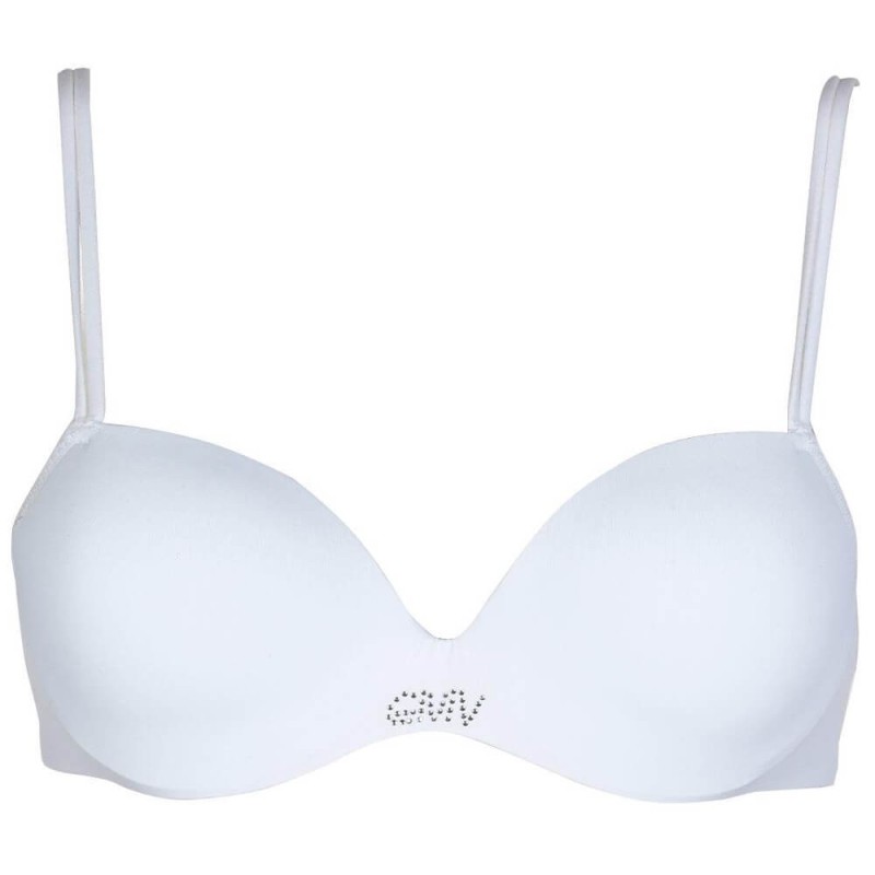 Reggiseno donna preformato, imbottito, con ferretto. Coppe in microfibra con logo in strass. Doppia spallina elastica regolabile.
