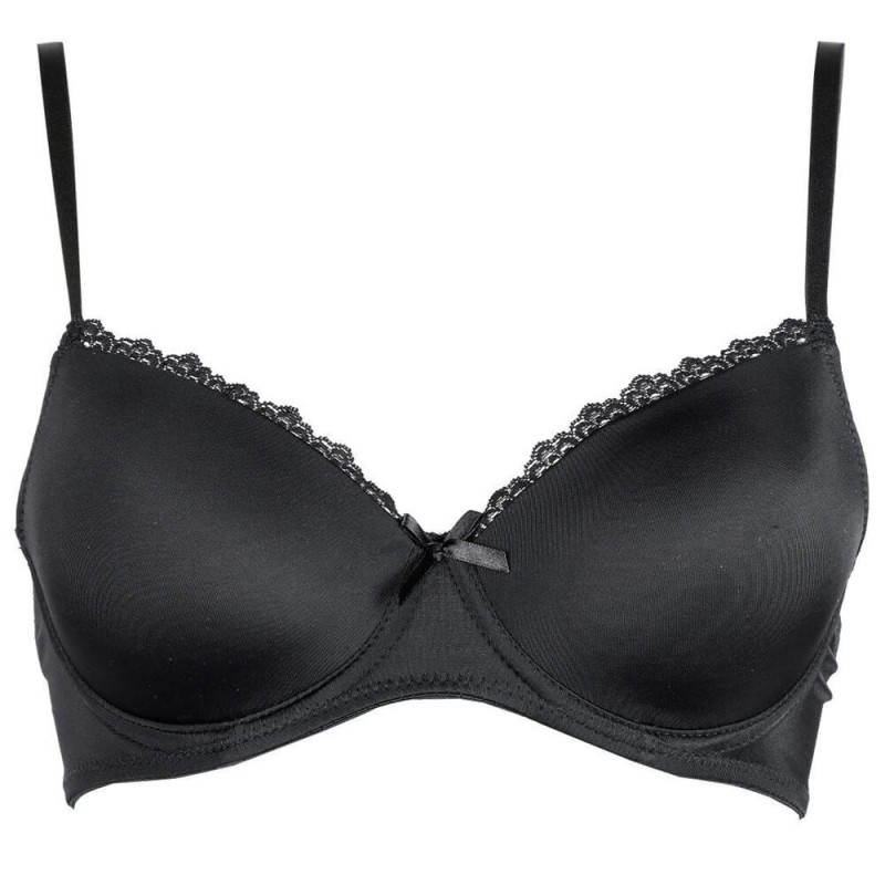 Reggiseno donna in microfibra, con ferretto. Coppe preformate, con imbottitura graduata. Piccola applicazione in pizzo. Morbide spalline elastiche regolabili.