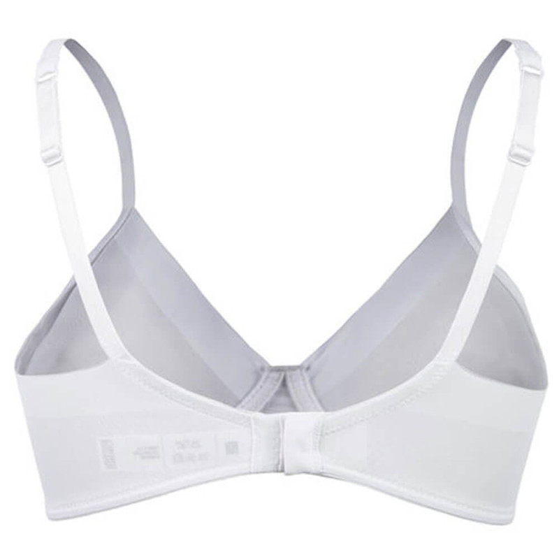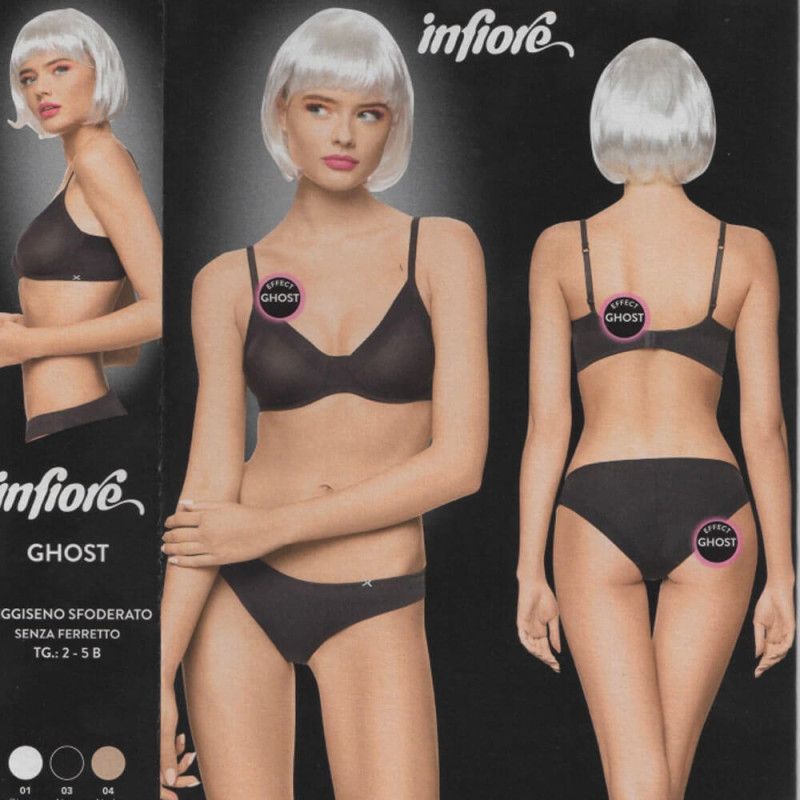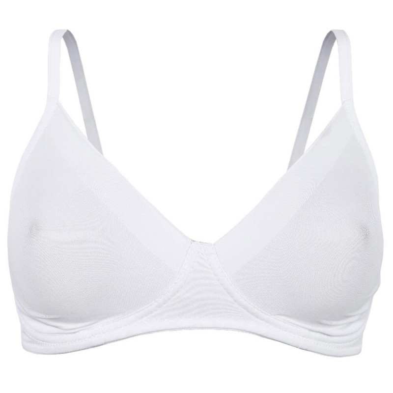 Reggiseno donna sfoderato, senza ferretto, in impalpabile microfibra elasticizzata taglio laser antisegno su bordo coppe e dorso. Piccolo fiocco in raso cucito. Morbide spalline elastiche regolabili. Disponibile nei colori bianco, nero e nudo dalla taglia 2 alla 5