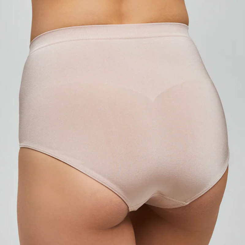 Slip donna seamless contenitivo, adattabile ed avvolgente, dotato di una zona rinforzata per il ventre e realizzato in morbida microfibra dall'effetto seta. Aiuta a modellare e contenere, offrendo un effetto pancia piatta. Grazie alla sua tecnologia senza cuciture, è confortevole e pratico per l'uso quotidiano, come una seconda pelle. Disponibile nei colori nero e nudo skin nelle taglie S/M - L/XL - XXL