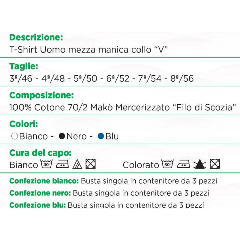 3 t-shirt uomo manica corta, scollo a V, in 100% puro cotone filo di Scozia colorato, rasato, tinta unita. Realizzato con pregiati filati di primissima qualità, il capo assicura morbidezza e freschezza. Ottima vestibilità. Disponibile nei colori blu, nero e grigio dalla taglia 3 alla 6. Qualità e stile made in Italy. Il medesimo articolo è disponibile anche in taglie comode.