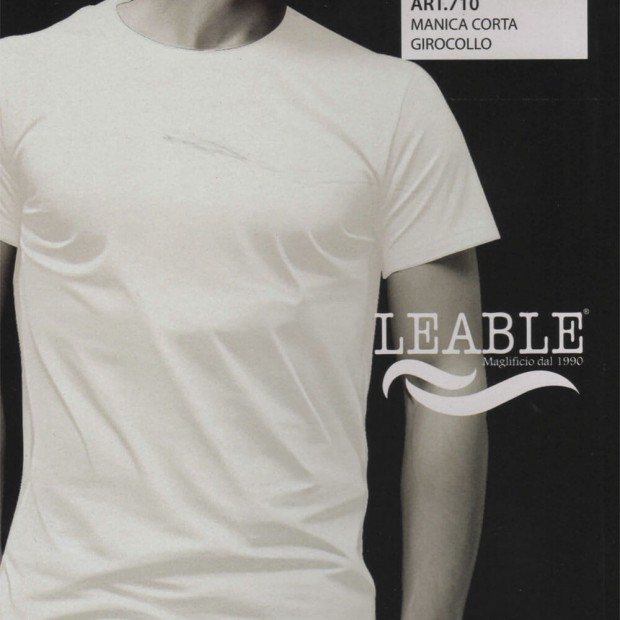 T-shirt uomo manica corta, scollo tondo profilo basso, in cotone elasticizzato tinta unita. Piccolo logo cucito sulla manica. Disponibile nei colori bianco e nero dalla taglia 4/M alla 7/XXL