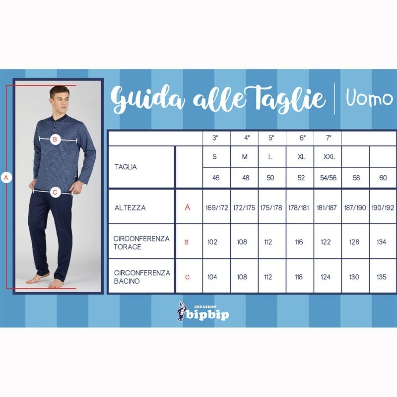 Pigiama uomo in puro cotone di alta qualità. Maglia tinta unita con morbidi polsini al bordo e alle maniche e piccolo ricamo laterale alto. Toppe cucite ai gomiti in tessuto in contrasto, come il profilo dell' apertura a serafino a 3 bottoni e dello scollo tondo. Pantalone in micro fantasia verticale con morbidi polsini tinta unita a costina liscia alle caviglie, come il bordino del taschino cucito dietro. Morbido elastico coperto in vita. Disponibile nel colore summer blu dalla taglia 4 alla 7. Qualità e stile Made in Italy