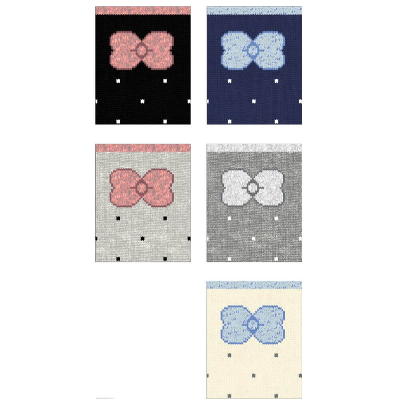 6 paia calza baby corta in caldo cotone elasticizzato rasato, lavorato in filo in graziose fantasie, con dettagli in lurex. Morbido polsino elastico a costina, anche smerlato al bordo.