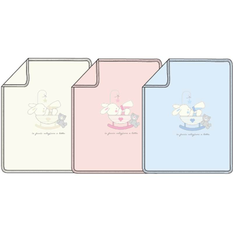 Copertina per carrozzina baby in morbido e caldo pile tinta unita, leggermente agnellato all' interno. Graziosi ricami centrali. Cm. 70x90