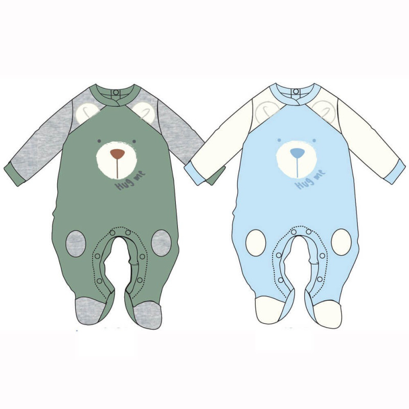 Tutina baby in morbida ciniglia di cotone tinta unita con graziosi ricami e soffici applicazioni. Spalle tagliate, in colore in contrasto come le maniche ed i piedini. Comoda chiusura con bottoncini a pressione posteriori e lungo le gambe. Disponibile nei colori cielo e verde nelle taglie 1 e 12 mesi