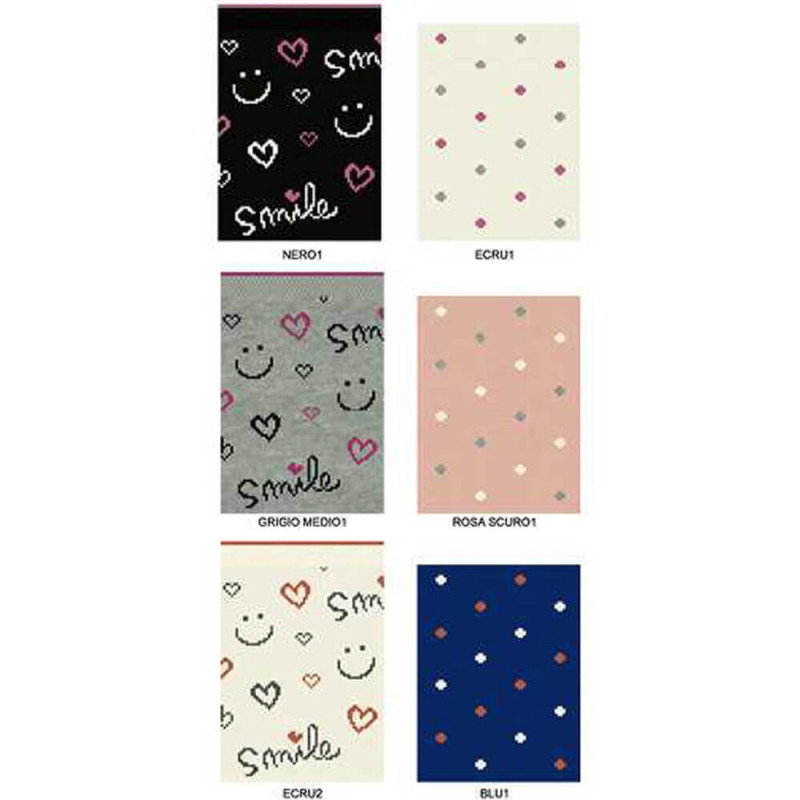 6 paia calza bimba corta in caldo cotone elasticizzato rasato, lavorato in graziose fantasie assortite. 3 paia con polsino smollato e 3 paia con morbido polsino elastico a costina
